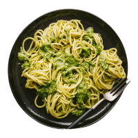 Linguine, Pesto Sauce, Zucchini, Pea, Mushroom, Lemon, Granda Padana, Served with Garlic Bread
