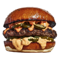Beef Patty, Lettuce, Tomato, Red Onion, Cheese, Spicy Mayo