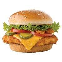 Chicken Patty, Lettuce, Tomato, Red Onion, Cheese, Spicy Mayo