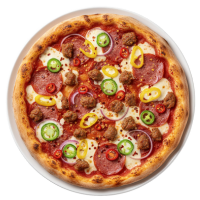 Rossa Sauce, Mozzarella, Chilli Flakes, Italian Sausage, Calabrese,Red Onion, Banana Peppers, Jalepeno