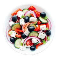 Lettuce, Tomato, Cucumber, Black Olives, Red Onion, Green Peppers, Beet Root, Feta & Greek dressing