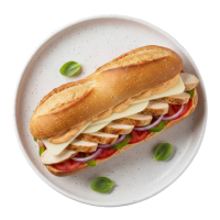 Spicy Mayo, Chicken, Red Onion, Green Pepper, Tomato, Provolone, Italian Sub