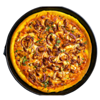 Rossa Sauce, Mozzarella, Pepperoni, Mushroom, Red Onion, Bacon, Cheddar Cheese