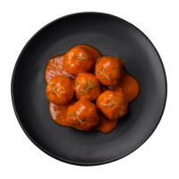 Meatballs, Marinara Sauce, Mozzarella, Garnished with Fresh Basil, Grana Padano